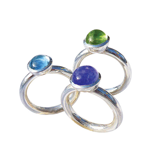 Lieblingsringe für jede Tag: Silber mit Amethyst oder Aquamarin im Cabouchon-Schliff.